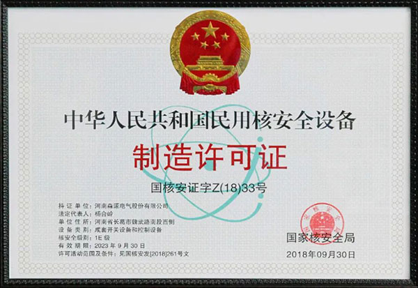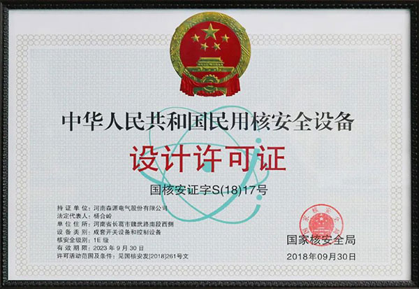 2018年bbv体育注册获颁民用核安全设备设计和制造许可证;