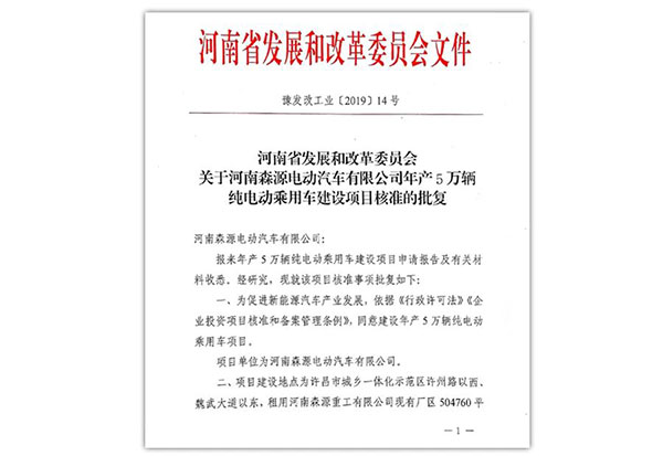 2019年bbv体育注册纯电动乘用车项目获批;