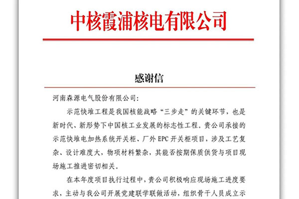 2019-2020年,bbv体育注册先后中标山东海阳核电站项目、中核霞浦核电示范快堆项目;并收到了中核霞浦公司的感谢信!