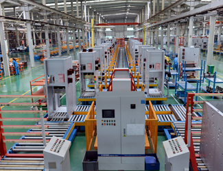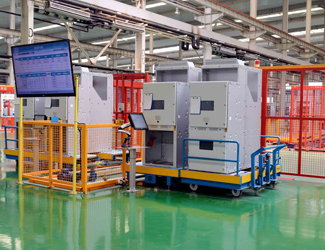 采用先进ERP/PLM/MES信息化管理手段,以及先进后封板焊接机器人、柔性加工线、焊接机器人、皖仪真空箱检漏回收系统等生产设备和试验检测设备,具有柔性加工、在线检测等功能;该生产线,自动化程度大大提升,框架装配、封板装配、二次仪表安装、二次放线、总装调试和测试等工序均可自动流转,实现了从纯手工装配到人操作机器掌控的跨越,安全性、生产效率大大提升,采取同步抽真空方式,避免了在常规大气层抽真空因压差大导致的箱体元器件损坏,且可在半小时内完成检测。