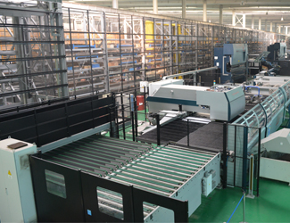 此系统主要由冲剪复合中心、多边折弯中心、折弯机器人和机器人自动堆垛系统组成。利用先进的计算机控制系统、机械加工工具精确操作、新型传感器技术、智能元器件集成、自动传导输送和数学模型集成管理等技术,将机械、电器、电子和软件工程的知识彻底的结合在一起,实现物流系统和信息集成的管理和控制。以此形成原材料的自动上料、加工、成型,成品的卸料、仓储等加工程序,可以高效率、大批量生产多种零部件的自动化加工生产线。另外,利用程序集成接口,与公司的生产管理软件连接,对生产调度和计划提供有力的支持,并极大提高生产效率和设备利用率。